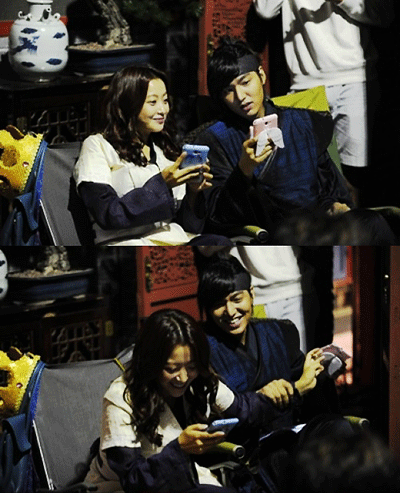 제작진에 따르면 두 사람은 촬영이 끝나기가 무섭게 휴대전화를 들고 게임대결을 펼쳤는데, 온라인 게임 실시간 배틀을 하며 서로의 스마트폰을 뺏으려고 하는 등 드라마와는 전혀 다른(?) 모습을 보인 것으로 전해졌다.