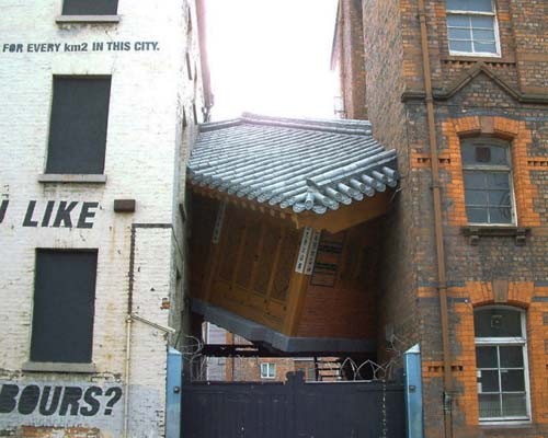 다만 두 빌딩 사이의 좁은 공간에 마치 양쪽 건물에 꽃혀있는 것처럼 '설치'돼 있다는 게 특징이다.