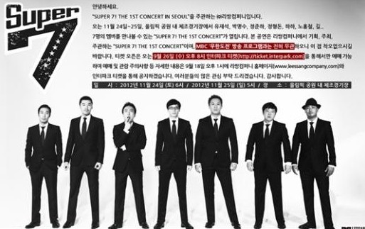 앞서 무한도전 멤버들과 리쌍컴퍼니가 준비 중이던 ‘슈퍼7’ 콘서트는 공연 시간대가 무한도전 방송시간과 겹치는데다 지금까지 팬 서비스 차원에서 했던 무료 공연과 달리 7만~9만원대의 티켓 가격을 책정해 일부 팬들로부터 거센 비난을 받았다.