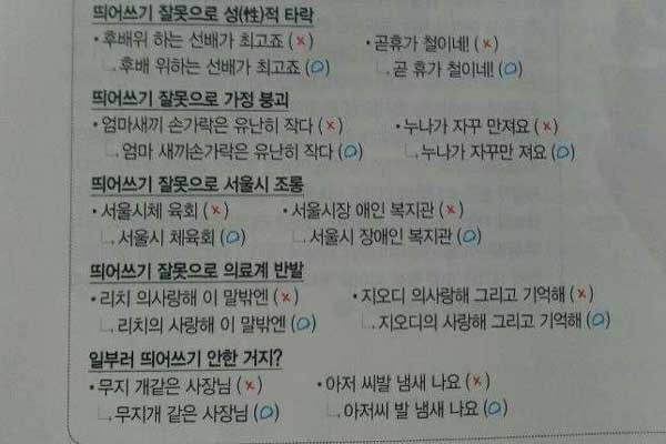 띄어쓰기 잘못했다가 해고되거나 명예훼손으로 고발당할 위험도 소개돼 있다.
