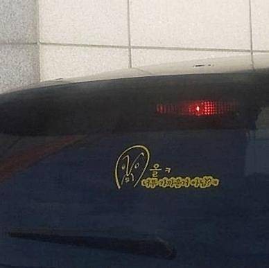 '요즘 초보운전 표시’ 사진에는 자동차에 붙어 있는 초보운전 표시를 찍은 사진으로, 뒷좌석 유리에는 “올. 너무 가까운거 아님?”이라는 글과 함께 익살스러운 표정의 캐릭터도 같이 그려져 있어 웃음을 자아낸다.