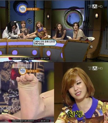 이어 전효성은 자신의 평발을 보여주려다가 "걸그룹이 이래도 되나"라고 말하며 머뭇거렸다. 이에 탁재훈은 "걸그룹은 발도 없어요?"라며 발을 보여줄 것을 요청했다.