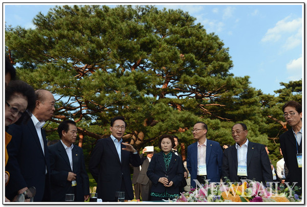 이 대통령은 이 자리에서 한반도 통일론을 연신 강조했다.