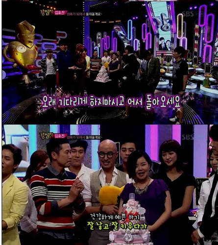 이날 강심장은 김효진을 위해 천기저귀 케이크를 준비했고 전 출연진이 케이크 앞에 서서 김효진의 하차에 대한 아쉬움과 태어날 아이에 대해 축복을 전했다.