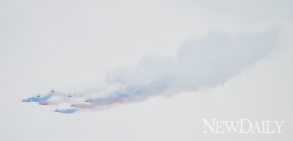 26일 오전 충남 계룡대에서 건군 제64주년 국군의 날을 기념하는 행사가 열렸다. 식후 행사 일부로 국군의 힘찬 비상을 표현 한 블랙이글의 축하비행이 진행됐다.