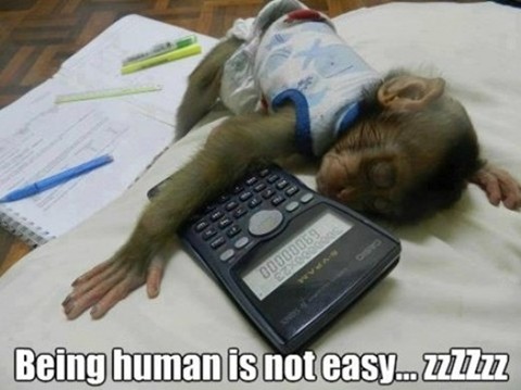 사진을 자세히 들여다보면 잠든 침팬지 주위에는 계산기와 함께 문제지, 필기구 등이 놓여 있어 흡사 수험생을 연상시킨다.