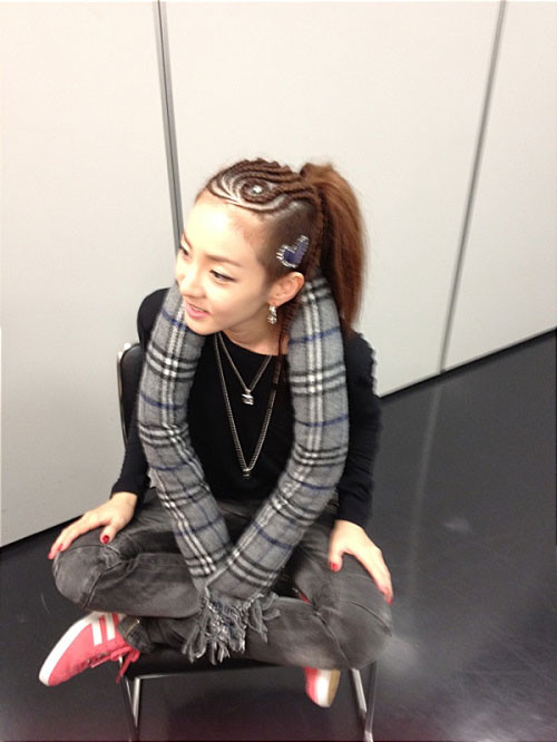 공개된 사진 속 산다라박은 반삭헤어에 하트 스크래치를 새긴데 이어 콘로우 헤어를 멋지게 소화해내고 있다.