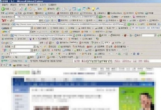 인터넷 서핑을 하면서 자신도 모르게 설치한 툴바가 인터넷창의 절반을 가리게 된 모습이 보는 이들의 공감과 웃음을 자아낸다.