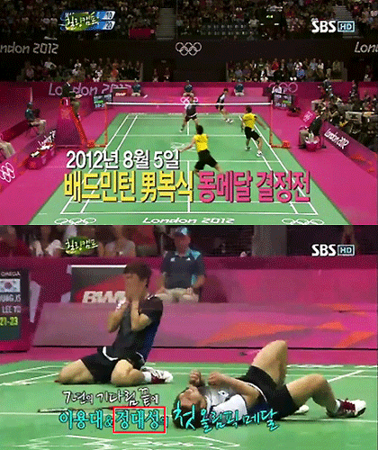 이날 방송에서 MC 이경규는 '2012 런던 올림픽' 당시 이용대-정재성 선수가 동메달을 딴 후 보여준 포옹 세레머니에 대해 질문했고, 화면에는 당시 자료화면이 등장했다.