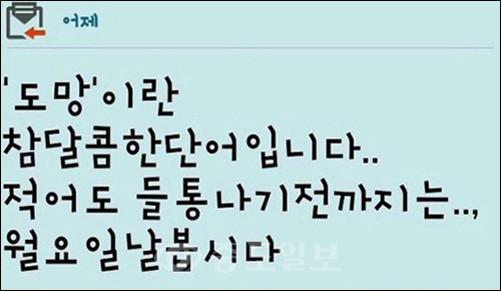 선생님은 도망간 학생에게 이렇게 문자 메시지를 보낸다.“도망이란 참 달콤한 단어입니다. 적어도 들통 나기 전까지는... 월요일 날 봅시다.”