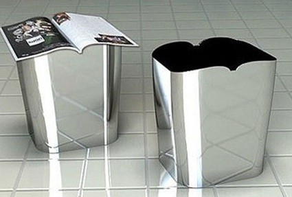 공개된 사진은 알루미늄 재질의 쓰레기통 모양의 독서대 모습을 담고 있다. 개성 넘치는 디자인이 돋보이지만 쓰레기통 기능에 ‘찜찜한 독서대’라는 이름이 붙여졌다.