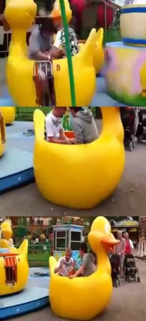 충격의 놀이기구 이탈 사고장면을 담은 영상이 네티즌들에게 화제다.최근 각종 온라인 커뮤니티 게시판에는 ‘충격의 놀이기구 이탈’이라는 제목의 짤막한 영상 한 편이 게재됐다.해당 영상은 어린이용 놀이기구를 즐기는 외국 청년의 모습을 담은 것으로, 오리모양의 회전 기구에 건장한 체격의 두 명의 남성은 어린이용 놀이기구에 탑승해 즐거운 한 때를 보내고 있다.하지만 아이들 규격에 맞춰진 놀이기구인 만큼 두 청년이 탄 오리는 다른 오리에 비해 심하게 불안정한 움직임을 보였고, 결국 두 사람의 무게를 이기지 못한 놀이기구는 지지대에서 이탈하는 사고가 발생했다.놀이기구 이탈 영상을 접한 네티즌들은 "성인이 유아용 타면 아니아니 아니 되오!", "옆의 어린이들 얼마나 놀랐을까", 역시 서양 형님들은 유쾌하게 사시네" 등의 다양한 반응을 보였다.