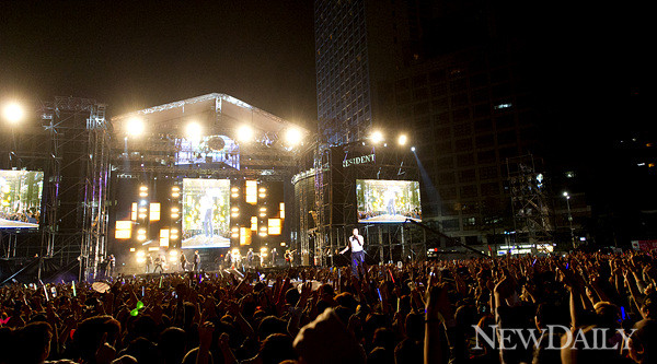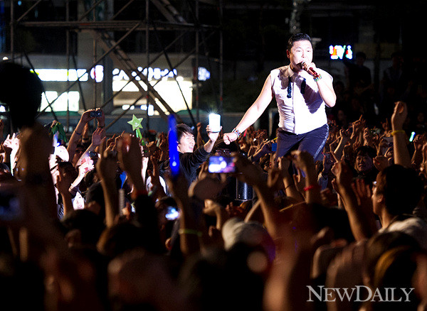 4일 밤 10시 서울광장에서 열린 콘서트에서 싸이는 비록 빌보드 차트 1위를 차지하진 못했지만 팬들의 성원에 보답하기 위해 무대에 올랐다.