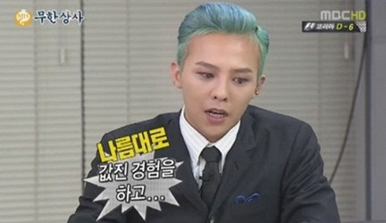 한편 이날 방송에서는 ‘무한도전’ 멤버들이 기발한 속옷을 디자인해 눈길을 끌었다. 또 지드래곤은 이후 TV 방송에서 정형돈(대리)을 비유한 노래 그대리를 불러 눈길을 끌었다.