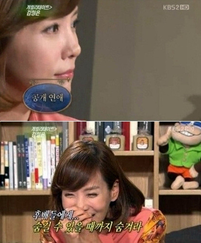 배우 김정은이 후배 연예인들에게 공개연애에 대한 조언을 해 눈길을 끌고 있다.