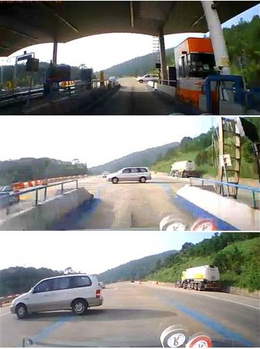공개된 동영상에는 서해안고속도로 충남 서산 톨게이트의 하이패스 전용차로의 모습이 담겨 있다.영상을 보면 톨게이트 앞 하이패스 전용 차선을 통과할 때 쯤 출구 쪽에서 흰색의 승합차 한대가 나타나 횡단하는 어처구니 없는 일이 일어난다.