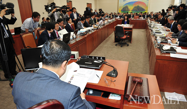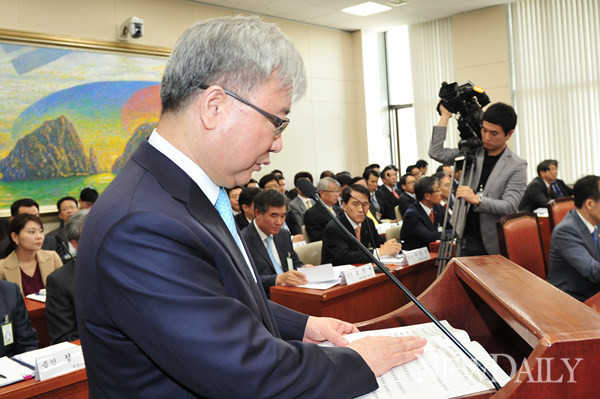 [포토]금융위 국정감사, 시작 전 김석동 금융위원장의 발언