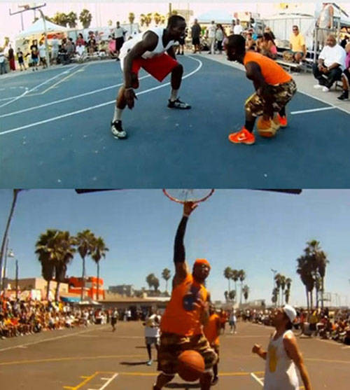 일반인들에 비해 현저히 작은 단신임에도 현란한 개인기로 농구코트를 휘젓는 모습이다.