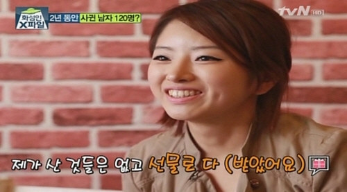 2년간 무려 120명의 남자 친구와 교제하고 이들에게 엄청난 선물을 받아낸 화성인 선물집착녀가 화제다.8일 오후 tvN '화성인 X파일'에서 전파를 탄 화성인 선물집착녀는 선물을 받기 위해 수많은 남자들과 사겨왔다고 고백해 주위를 놀라게 했다.