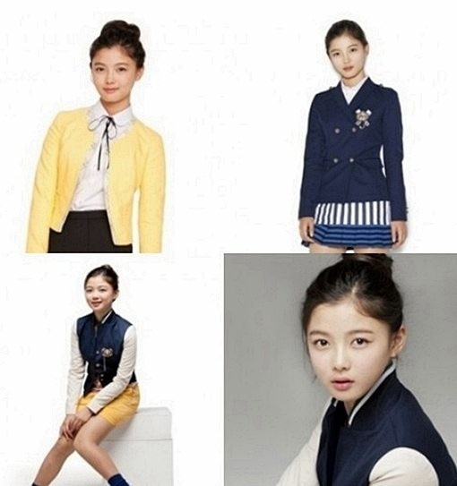 게재된 사진 속 김유정은 단정한 교복 차림으로 교복 브랜드 모델다운 모습을 보이고 있다.