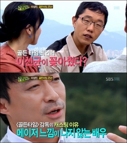 이날 방송에서 이성민은 소속사 동료 이선균 덕분에 낙하산으로 MBC 드라마 '골든타임'에 출연한 것 아니냐는 의혹에 적극적으로 해명했다.