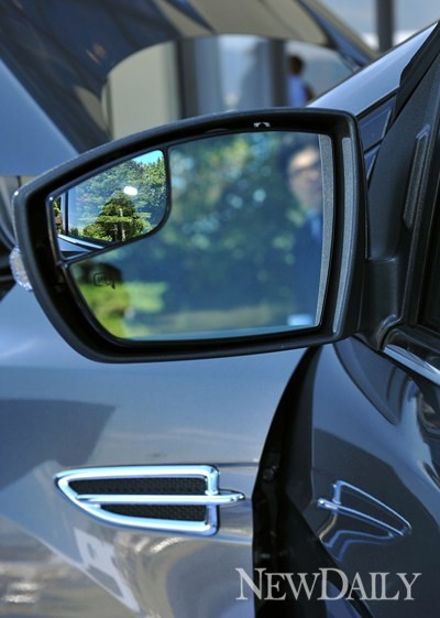 • 미국차를 탈 때마다 가장 마음에 드는 게 이 사이드 미러다. 열선도 내장돼 있다. 왼쪽 윗귀퉁이에 붙은 작은 반사경은 사각지대 보조거울이다. 처음 볼 때는 헷갈리기도 하지만 익숙해지면 오히려 편하다. 이스케이프에 붙은 사이드미러는 '아메리칸 스타일'이 아니기에 접힌다.