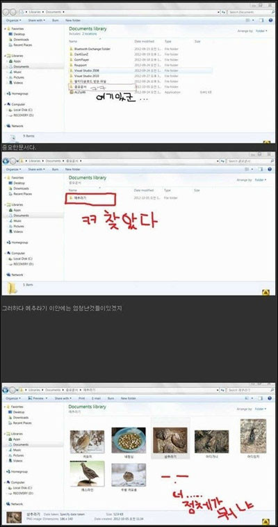그리고 자신 있게 메추라기 폴더를 클릭했다.