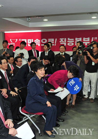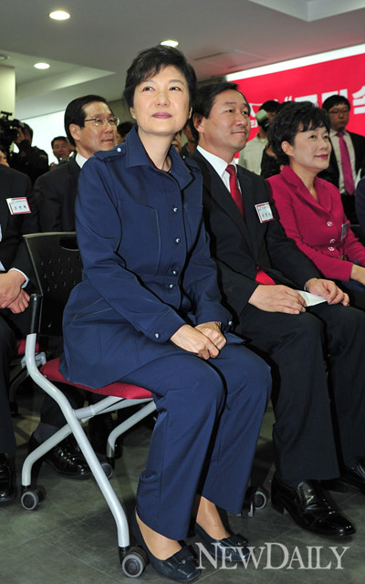 박근혜 새누리당 대통령후보가 11일 서울 여의도 당사에서 열린 '중앙선대위 직능총괄본부' 발대식에 참여했다.