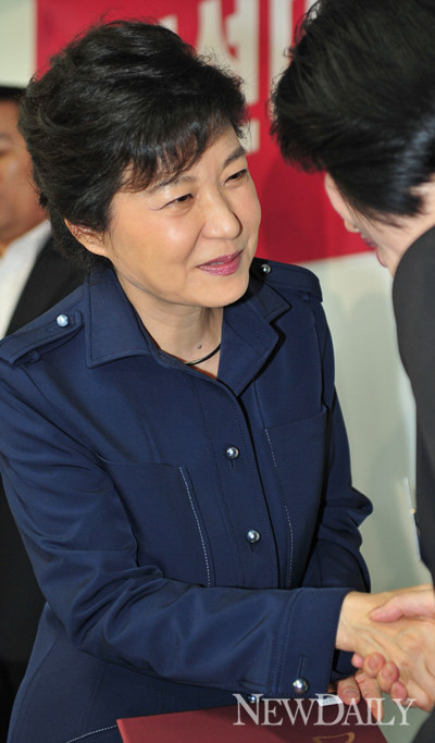 박근혜 새누리당 대통령후보가 11일 서울 여의도 당사에서 열린 '중앙선대위 직능총괄본부' 발대식에 참여했다.