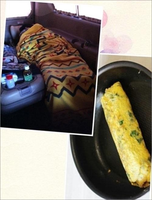 공개된 사진 속에는 노란색 담요로 몸을 돌돌 감고 차 안에서 누워있는 지아의 모습이 담겨져있다. 특히 사진 속 지아는 실제 계란말이의 사진과 비교돼 보는 이들을 폭소케 했다.