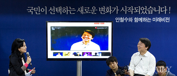 • 무소속 안철수 대선 후보는 12일 재외국민과의 타운홀미팅 `안철수에게 바란다'를 통해 자신의 소소한 일상부터 국가정책에 대한 견해를 이야기했다. 이날 공평동 선거캠프에서 진행된 미팅은 노르웨이ㆍ말레이시아ㆍ일본 등 국외에 거주하는 국민과 화상대화를 통해 지지자들의 선거를 독려하는 동시에 안 후보의 비전을 선보이는 자리였다.