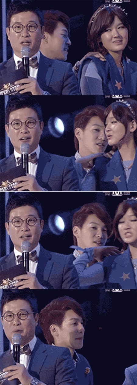 하지만 이날 생방송 말미 MC 김성주가 클로징 멘트를 하는 사이 문제의 장면이 포착됐다.