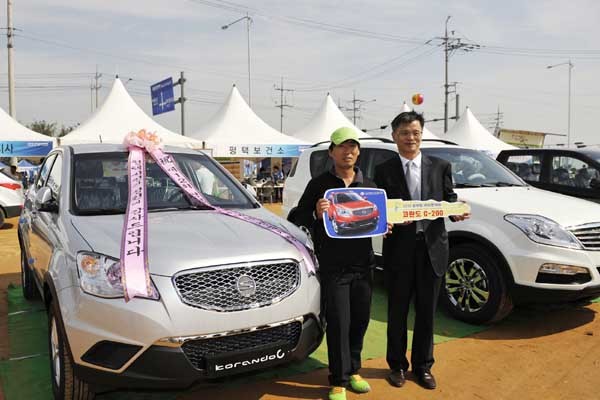 쌍용자동차(대표이사 이유일. www.smotor.com)가 지난 13일 경기 평택항에서 열린 ‘2012 평택항 마라톤 대회’에 ‘코란도 C’를 경품으로 제공하는 등 지역 문화행사 후원 활동을 펼쳤다고 밝혔다.