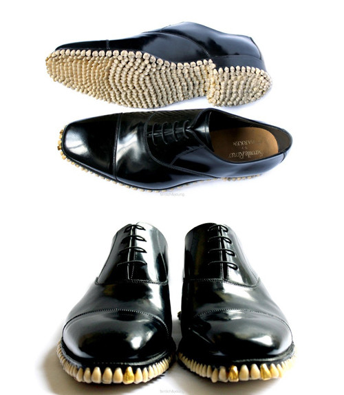 사진 속엔 깔끔한 남성구두가 보인다. 하지만 일반적인 구두가 아니다. 구두 밑창에 치아 1,000개 가량이 촘촘히 박혀 있다.