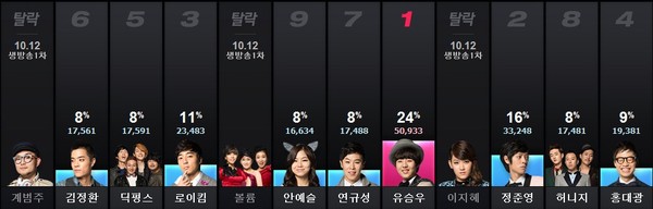 특히 음악 프로들 중 가장 화제가 되고 있는 Mnet <슈퍼스타K4>의 지난주 12일 방송은 이지혜가 탈락 후 위로 해주려던 딕펑스 멤버 김태현의 손길을 매정하게 뿌리치는 장면(재생수 7만4,302)과 "엄마 연애 좀 할께요"라는 애드리브로 여심을 녹인 유승우의 ‘My Son’ 공연 장면(재생수 4만4,204)이 화제가 되면서 이전 방송들 보다 재생 수가 급격히 상승해 눈길을 끌었다.