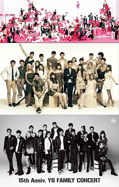 공개된 사진은 이수만이 이끌고 있는 SM엔터테인먼트, 가수 박진영이 대표를 맡고있는 JYP엔터테인먼트, '서태지의 아이들'의 양현석이 대표인 YG엔터테인먼트 등 각각의 소속 가수들이 함께한 단체 사진을 모아놓은 것.
