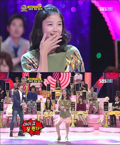 이어 김유정은 오렌지캬라멜의 '립스틱'에 맞춰 준비한 깜찍한 댄스를 완벽하게 선보여 출연진을 열광케 했다.