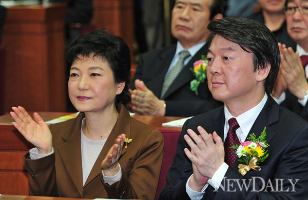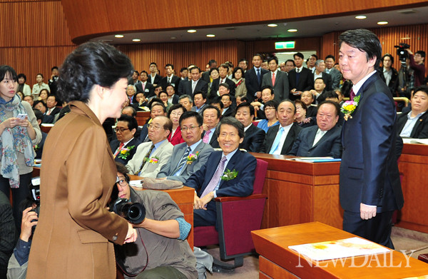 [포토]김대중 기념사업토론회, '박-안'후보 묘한 긴장감