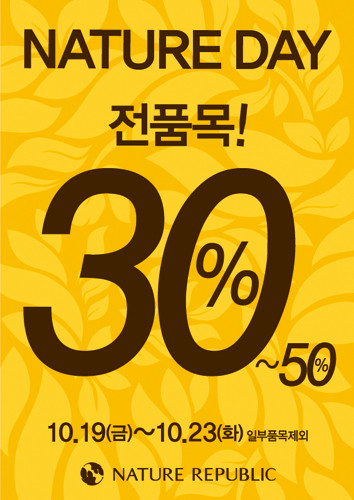 건조한 가을, 촉촉하고 빛나는 피부 관리를 돕기 위해 네이처리퍼블릭에서 ‘네이처 데이’를 진행한다. 멤버십 고객을 대상으로 제품을 최대 50% 할인하며, 19일부터 23일까지 5일간이다.