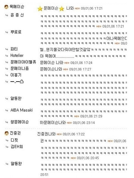 게시물을 보면 '문메이슨'이란 아이디를 놓친 사용자가 '목메이슨'이란 변종 이름을 울며겨자먹기로 쓰면서 자기가 쓰려던 아이디를 사용하고 있는 사용자를 부르고 있다. 한술 더 떠 아래쪽을 보면 '문메이아이헬퓨', '창문메이슨‘과 같은 또 다른 파생 아이디들도 등장한다.
