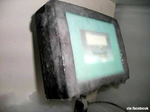 실제로 해당 사진을 보면 '완전히 얼어붙어' 성에가 낀 컴퓨터 모니터를 볼 수 있다.