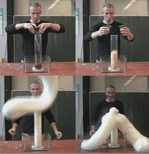 동영상에서 ‘말포이’가 시험관에 두 가지 액체를 넣자마자 눈 깜짝 할 사이에 거품이 솟구치며 기둥을 만드는 장면이 눈길을 사로잡는다.