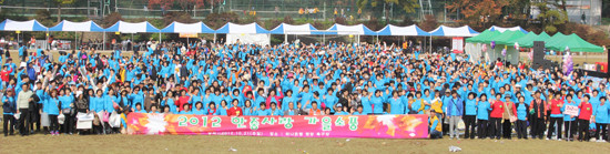 2,500명의 중국동포들이 21일 경기도 고양시 덕양구 성사동 하나은행 원당축구장에서 열린 ‘한중사랑 가을소풍’을 즐겼다. 이날 참석한 중국 동포들은 수도권은 물론이고 경북 안동 등 전국에서 모인 약 2,500명. (사)한중사랑 및 동포체류지원센터, 한중사랑교회가 주최한 이번 행사는 올해로 벌써 11년째 열리는 것이다.