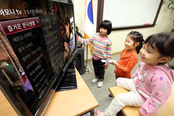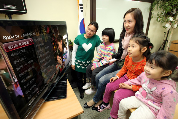 ‘하모니TV’는 다문화가족 아동들을 위해 중국어, 베트남어, 일본어, 몽골어, 영어 등 5개 언어로 자막이 처리된 한국어 교육 프로그램 1,100여편을 제공한다.