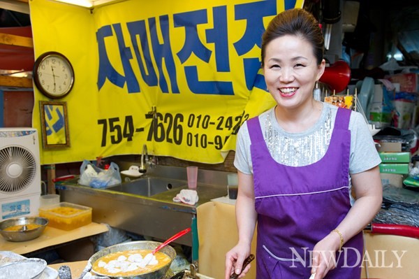 “명절 시즌에는 그야말로 정신이 없어요. 소비자들이 시장 입구부터 100m넘게 줄을 서 있거든요. 전을 기다리는 사람들이 지루하지 않도록 ‘생활의 달인’ 출연 당시의 기술도 선보이곤 하죠. 그 때만큼은 아르바이트생을 고용해야 해요. 전만 부치는 사람 30명, 하루 종일 계란만 까는 사람도 있고요. 판매만 맡아서 하는 아르바이트생도 있죠. 부쳐도 부쳐도 끝도 없는 전 때문에 힘들긴 하지만 멀리서 일부러 찾아왔다는 소비자들을 보면 감동의 눈물이 맺히기도 해요.”