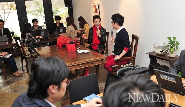 새누리당 김성주 공동선대위원장과 김상민 청년위원장이 24일 오전 서울 마포구의 한 카페에서 기자들과의 두번째 번개팅을 가졌다.