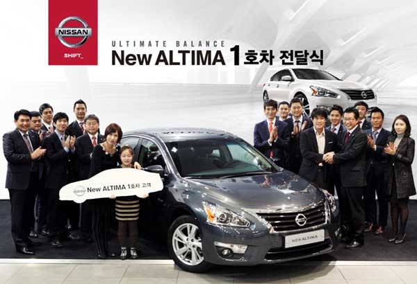 한국닛산㈜(대표 켄지 나이토. www.nissan.co.kr)은 지난 23일 중형 세단 뉴 알티마(New ALTIMA)의 1호차 전달식을 갖고 본격적인 차량 출고에 들어갔다고 밝혔다.