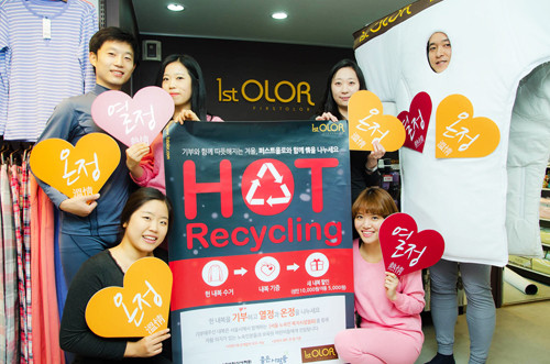 속옷 브랜드 퍼스트올로에서 입던 겨울 내의를 기부하면 2012년 신제품 보온 내의 온정(溫情)과 발열 내의 열정(熱情)을 할인해주는 ‘핫 리사이클링(Hot Recycling)’ 캠페인을 실시한다.