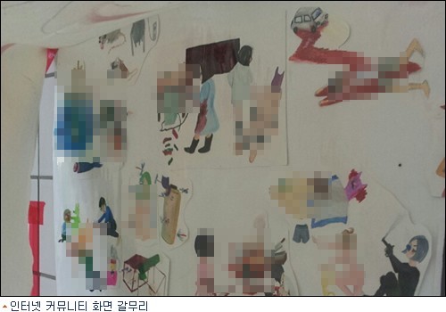 전시코너에 붙은 안내물에는 모 미술학원을 다니는 학생들이 호기심을 주제로 전시를 한다는 내용이 적혀있었는데 이런 충격적인 내용을 어떻게 학생들이 그리고 전시까지 할 수 있냐.”