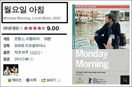 대부분의 사람들이 두려워하는 ‘월요일 아침’이라는 제목 때문에 ‘주말에 무서운 영화’로 등극해 웃음을 자아냈다. 반면 이 영화는 9점의 높은 평점을 기록하여 웃음을 덧붙였다.